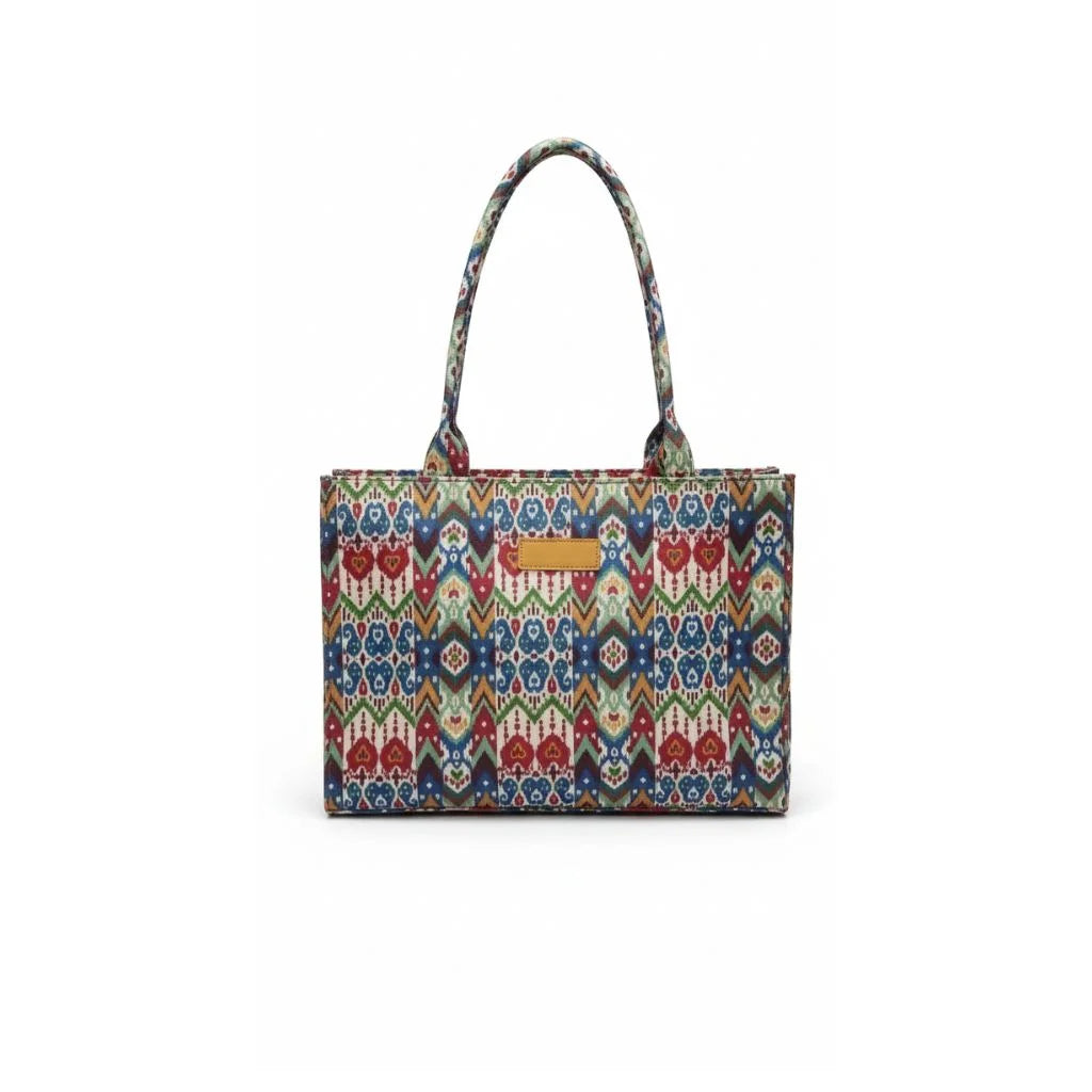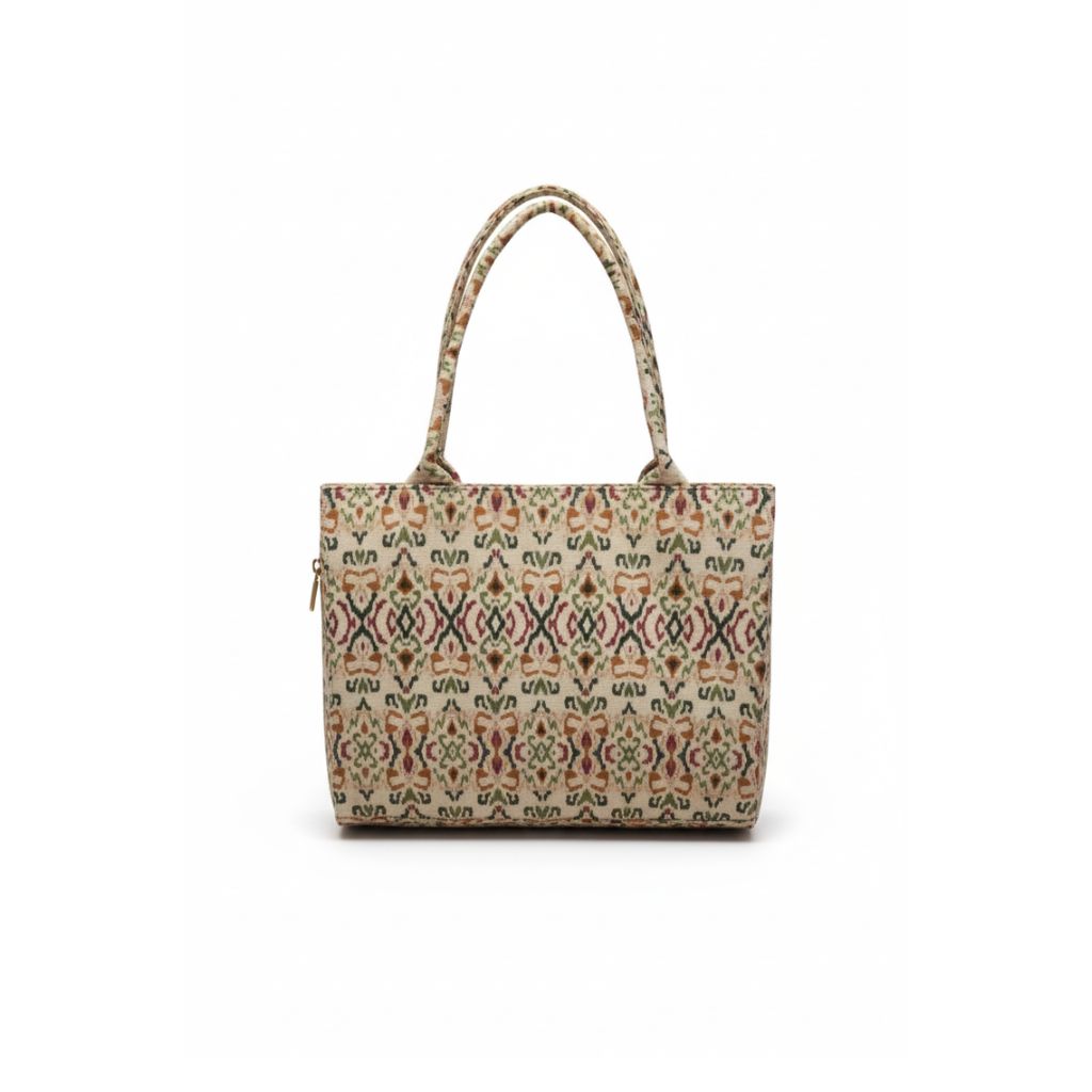 A stylish fabric tote designed for everyday comfort with a cultural touch. Featuring a structured...