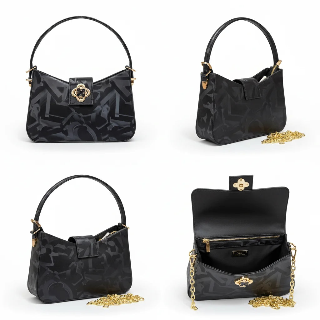The Nooré Charm Shoulder Bag is a sleek and elegant handbag designed for effortless everyday styling. Featuring a compact structured shape with a secure flap closure, it offers a refined look while keeping your essentials organized.