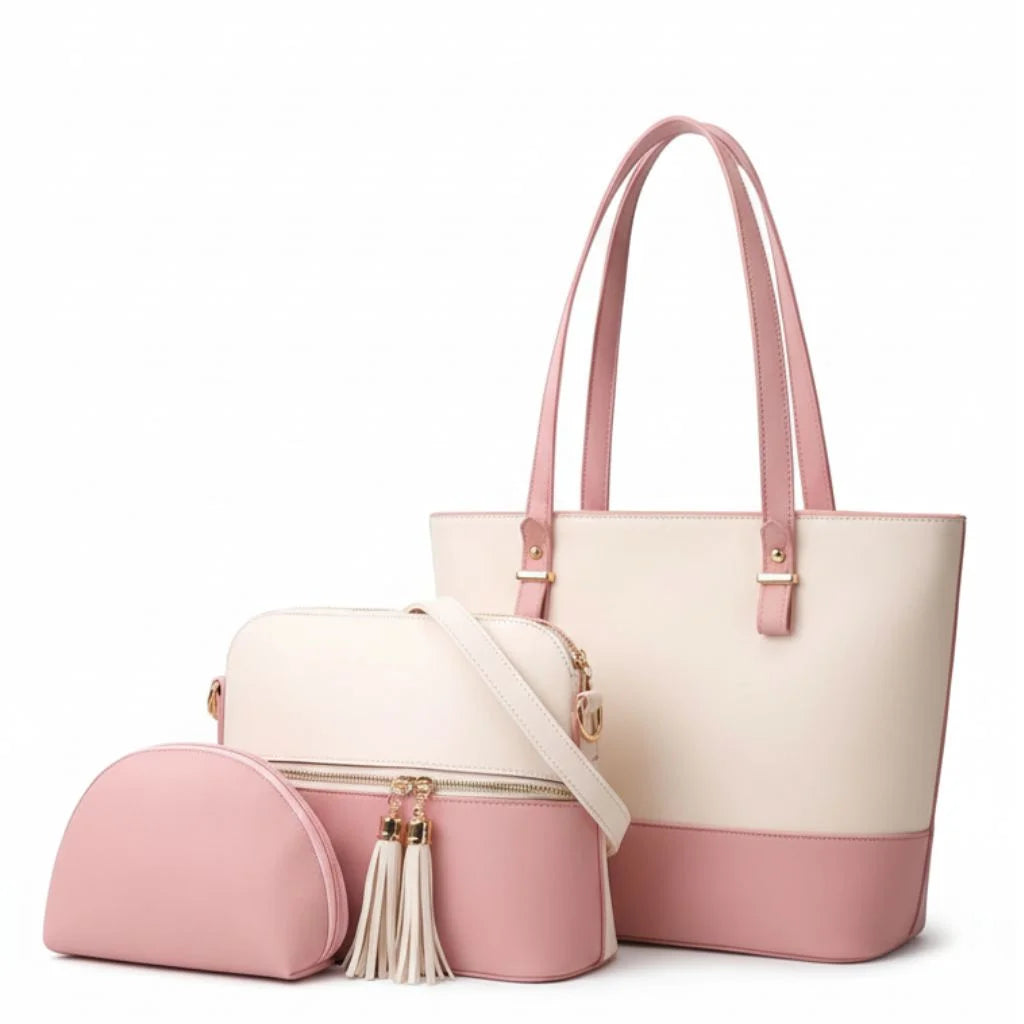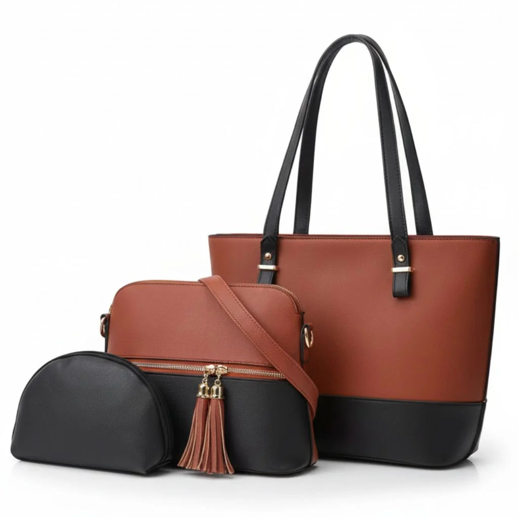 Crafted locally with care, this set includes a structured tote for daily carry, a sleek crossbody with tassel charm, and a compact pouch for your go-to essentials. Perfect for college, work, brunch, or travel — this is the definition of affordable luxury.