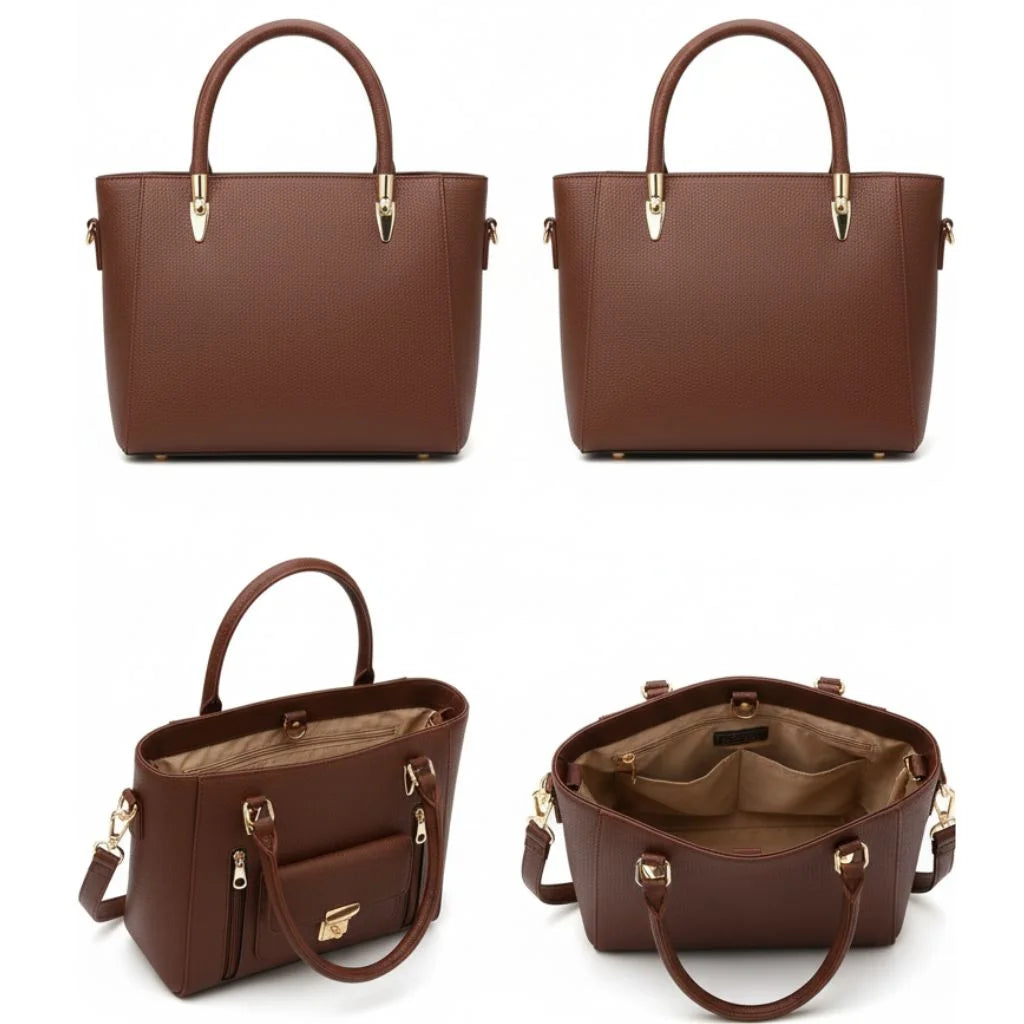 Handcrafted with precision, this bag combines timeless structure with gold-tone statement hardware. Ideal for office hours, after-hours, and everything in between. Comes with a detachable shoulder strap and matching pouch for added versatility.